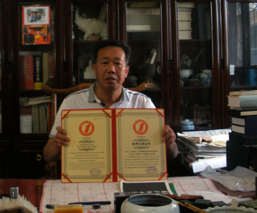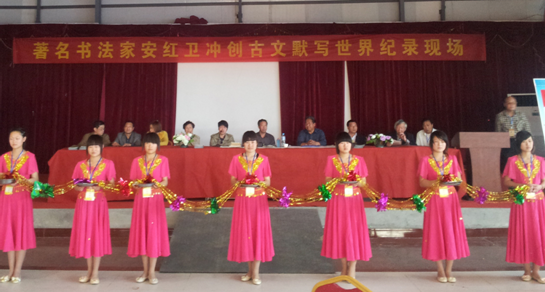 根据世界纪录协会官方网站的数据显示,该纪录详情如下:中国河南省新野县安红卫先生于2013年5月1日至6日在南阳首届茶文化书画展览活动中,用毛笔楷书记忆默写古代名篇16篇,共计20145字,累记书写时间为23小时40分钟,卷长146.4米、卷高0.35米,创世界纪录协会世界上“记忆默写”古文字数最多的行楷书法长卷系列世界纪录。