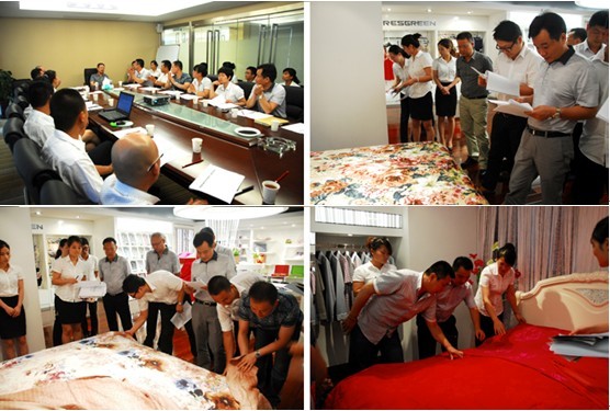 2013年7月4日下午,绿之韵生态纺织“2013— 2014春夏/秋冬新品研讨会”在公司召开,湖南绿之韵生态纺织科技股份有限公司总裁刘尚线、执行总裁牛超、副总裁邵兵及部分员工参加了会议。本次新品研讨会主要通过对2013秋冬及2014春夏产品的展示,精选出当季主打产品。