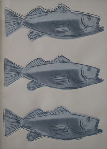 安迪·沃霍尔与其他波普艺术家相比显得更彻底,他完全取消了艺术创作中的手工操作观念,直接用制版印刷的方法把照片形象移到画布上。这幅《鱼》就是丝网印刷的经典名作。艺术是生活的艺术,生活是艺术的生活。艺术形式与自然界的生命形式具有同构性,安迪•沃霍尔用独到的表达方式诠释了当时工业化大批量生产的背景下,可口可乐瓶无尽无休的排列,以及明星们的照片都成为了最好的创作主题和素材。这十分贴切的反映出了后工业时代的特征,现代工业正是这样每天重复着同一样东西。以直观的艺术形式代替了深奥的艺术。随着后现代艺术的推进,它同我们生活的界限也显得愈来愈近,可能我们无法意识到,但它作为我们生活和精神的组成部分已无法替代。