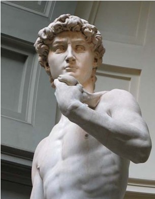 雕像《大卫》是米开朗基罗创作的人们最为熟知的作品之一,这件雕塑作品最鲜明展示盛期文艺复兴意大利美术特点的作品。也正是在创作这件作品的时候,米开朗基罗寻找到最能够体现他艺术内涵的雕刻材料——一种名为卡拉拉的白色大理石,这种材料也成为他今后雕塑作品的专用材料。只有这种材料特有的质地与光泽,才能将米开朗基罗希望表达的生命感从石头中释放出来的,配以他精湛的技巧、强烈的信心,才能雕凿出完美的巨像。