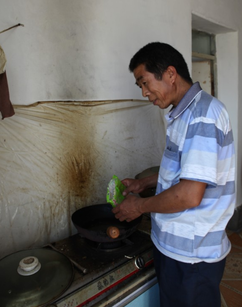 一年后,随着第二个孩子的出生,妻子的病再次反复。可是这次他再也没有能力为妻子治病了。时常是他把小儿子托付给邻居,自己则带着女儿下地干活。后来,他总觉得给别人填了太多的麻烦。便背着儿子,领着女儿下地干活。辛苦了一天,带着两个孩子从地里干活回来,还要一手抱着儿子一手烧火做饭。饿了的妻子就在旁边大骂。他总是乐呵呵地说:“饿了?再等会儿,等会儿……”