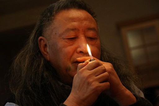 早晨。创作室的一个寻常的工作日。室内的灯还没全开。石虎如往常一样,一段冥思后,在开始工作前正在把一只烟点燃。快门像有了神觉,扑捉到了这经典的瞬间。那天,在屈则成先生的大师资料库里,我一眼就被这照片的人物和场景深深吸引。淡定内敛 .大气不凡的石虎,手中那束光芒,温暖明亮。专注凝视能感到十分强大的气场。那束光芒能让人联想到创世之初那久远的典故:“上帝说要有光,于是就有了光。”这光劈开混沌,照亮万物。众多了解石虎艺术人生大师之路的人,都会从这张极传神的照片中找到共鸣。上世纪70代末,国家百废待兴,文化一片荒漠,美术更是处在盲区,来路不见,前方尽墨。石虎先是在《非洲速写》中用唯美风格新潮的形式,为懵懂的美术界打开心智,让荒漠透进了光。当80年代新旧思潮交锋,美术界被盲从和无所适从笼罩,他石破天惊的文论《蛮梦》,用明快的哲学诠释了中国画的发展道路和方向。石虎之于东方艺术,是全球范围内画的最好的中国画家,没有之一;之于中国绘画,恰如图片传递的意境,一个神圣的布道者,一束照亮前方的光。