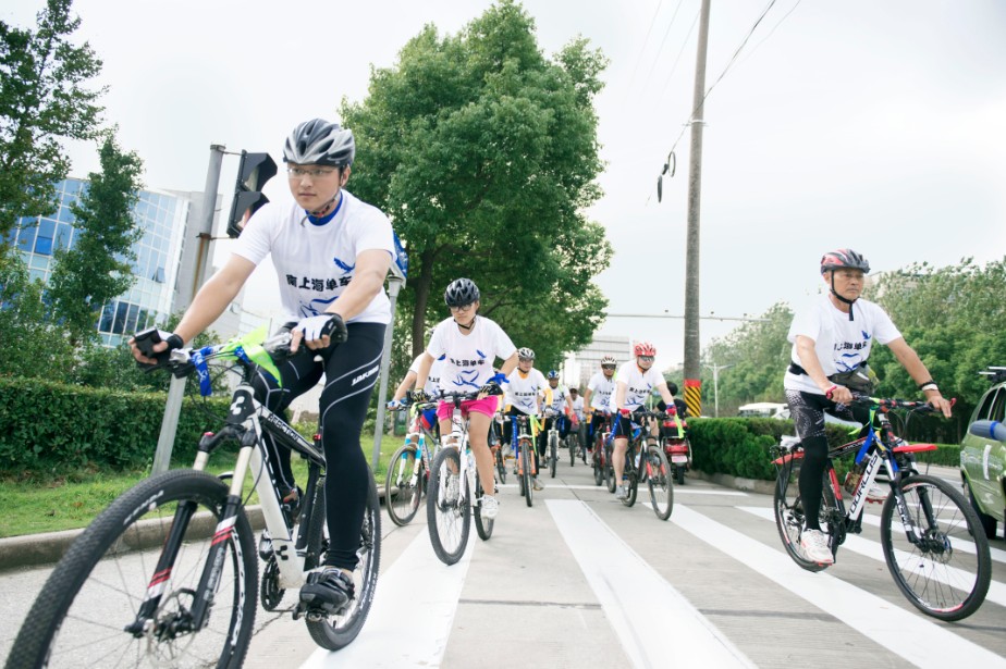 骑行过程中,俱乐部安排了一辆后勤车全程跟随,车上配有简易药箱、气筒、备胎等工具,随时应对突发情况的出现。一个半小时后,骑行队伍胜利到达终点。整个活动安全有序,成为无车日当天一道亮丽的风景线!记者随机采访了活动主要发起人糖糖(南上海单车俱乐部创始人),她告诉记者,玩儿单车是她的最大兴趣,通过六年的时间,她将兴趣发展成为事业,越来越多的人跟随她一道玩起了单车,于是她索性成立了“南上海单车俱乐部”,俱乐部为非盈利性社团,秉承“快乐健康”的理念,会员队伍由当初的五个人发展到如今的数百人,在她的组织下,队伍曾经骑行到青海湖和西藏。