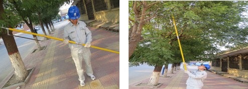 该公司城关供电所由于需要清理的树木点多面广,很多高空清理工作因日程安排繁忙不能使用高空作业车,或因现场条件限制高空作业车不能作业。为此,城关供电所员工贯彻“聚转提争”大讨论活动指引,高低压线路管理人员结合五小创新活动,制作出“高空枝干清理锯”,在通道清理工作中发挥了重要作用。