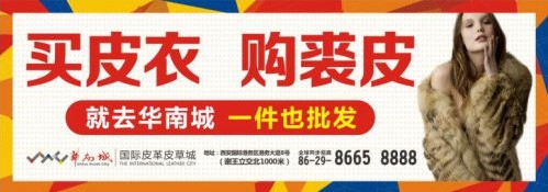 西安华南城国际皮革皮草城是目前西北规模最大、档次最高、配套最完善的皮革皮草交易中心和中国西北皮革皮草服装流行趋势发布中心,据西安华南城相关负责人透露:“国际皮革皮草城已经吸引了众多来自国际国内皮革皮草行业巨头纷纷落户,众多商户表示看好华南城的潜力。”