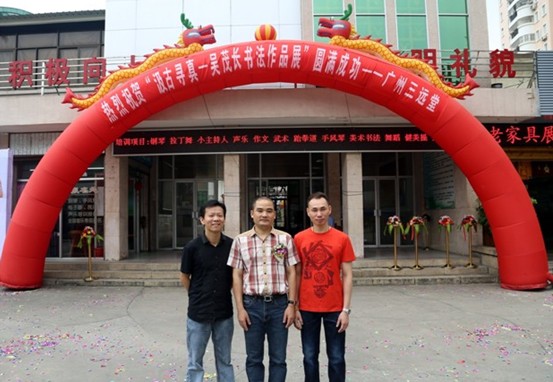 吴茂长(中)与广州三远堂沈恩赐(右)、漳州画院副院长张秋桔合影