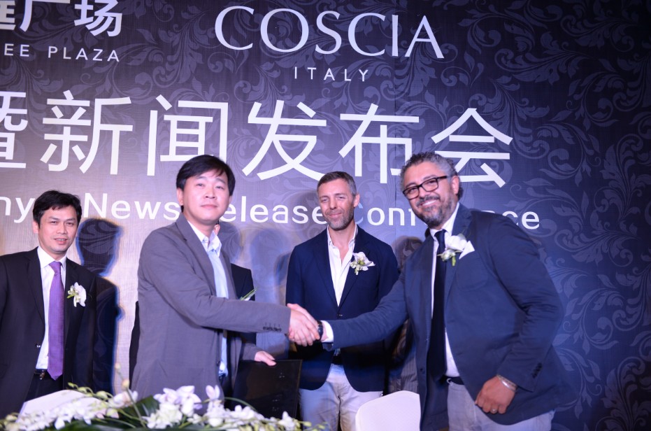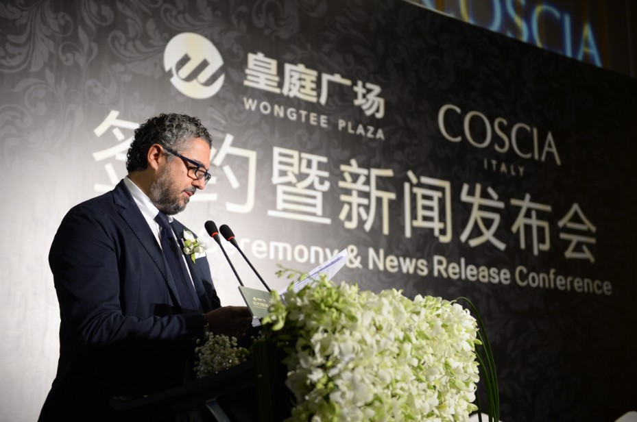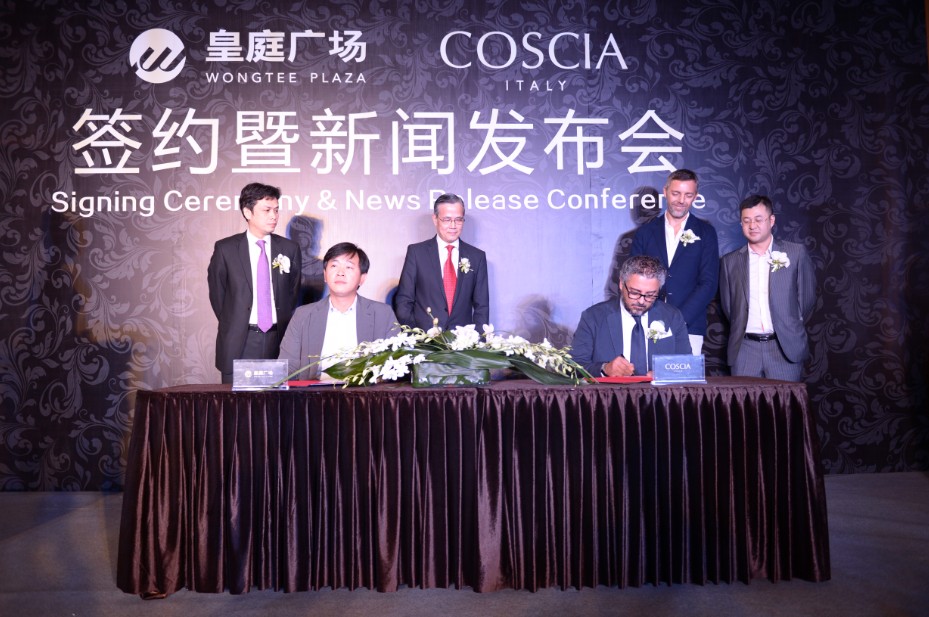 皇庭广场店将成为COSCIA进驻中国的第一站,是其中国战略的开篇之作。为此,意大利COSCIA家族第四代掌权人Pasquale Coscia 先生、 Fiorenzo Coscia先生携其夫人,从意大利飞抵深圳参加本次签约仪式。皇庭广场与COSCIA的正式合作,寓意着皇庭广场这座中国商业巨擘,汇聚全球品牌之星,即将闪耀天际,敬请期待!