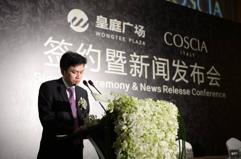 COSCIA百货致力于成为中国消费者的核心服务品牌,面向最具潜力的年轻高端时尚消费者,提供更加亲民的会员价格、更加多样化的品牌组合。意大利COSCIA公司通过授权其在香港投资的香港COSCIA公司在大中华地区寻找有实力的合作伙伴,考察到皇庭广场是由世界顶级商业设计公司英国Benoy通过精彩的建筑设计手法,运用“水晶礼盒”的前卫设计理念,拥有绝版的地理条件,周边林立的豪宅、五星级酒店、超甲级写字楼,汇集多条轨道交通线路,兼具会展中心常年不断的展会活动,每年可带来26万以上的高端常驻消费人群,1000万以上的流动人口、620亿元以上的消费需求,是屹立在深圳中轴上的顶级购物中心,是最理想的合作伙伴,双方通过多次协商,达成战略合作,最终确定进驻皇庭广场开设大中华地区的第一家旗舰店。