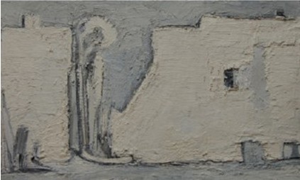 《城市建设》是雷米·艾融作品中少有的、以写实笔法进行创作的艺术作品,虽然在画面中清晰的呈现了建筑物线条变形的特点,但是,《城市建设》的表现手法更为精简,以点带面的表现了工业化社会的发展和衍生的周边效应。《城市建设》以灰色与灰白色作为主色调,点染较少的灰黑色。一般而言,用色极简的情况下,画面的光影效果很难突出,但在《城市建设》这幅作品中,雷米·艾融大量运用“空间散射光”技巧,是建筑物的轮廓更加凸显,同时断壁残垣间留出大量的空白,在画面的黄金分割点安置窗口,使平面透视效果更加立体。