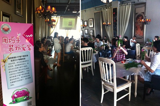 9月14日下午,南京联通VIP客户俱乐部在万达西地举办了“用巧手装扮爱家”花艺DIY的主题活动,邀请花艺师为前来参加的VIP客户讲解有关花艺方面的知识。