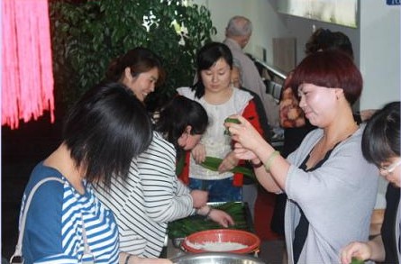 下午2点半,公司将提前准备好的糯米、红枣、粽叶等包粽子的材料运至老年公寓,来自各部门的包粽选手也准时来到了老年公寓,与社区工作人员一起开展包粽子活动。整个活动现场欢声笑语、其乐融融,大家都包得不亦乐乎,熟悉包粽子程序的选手向不熟悉的选手示范了包粽子的窍门,一时间粽叶舞动,麻绳穿梭。有的选手双手将粽子叶卷成漏斗状后,用糯米充实压紧,再用细绳打个结,动作麻利优美,转眼间就包出了一个可爱的小粽子;也有的选手因为没有经验,绳子还没来得及捆,粽子叶就散了。经过大家的辛勤劳作,各种奇形怪状的粽子开始成形了,有三角的,四角的,长方形的,颇有特色。看着那一个个的劳动成果,选手们都开心的笑了。