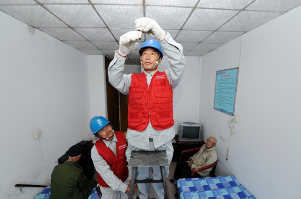 “这回好了,灯亮了。”在李大爷的寝室里,共产党员服务队队员小张和队友不但对敬老院内的供电设施进行了安全检查,还对不亮的灯泡进行了更换。(史文全 才霞)