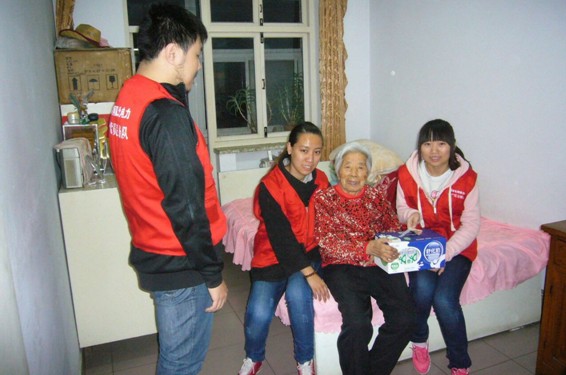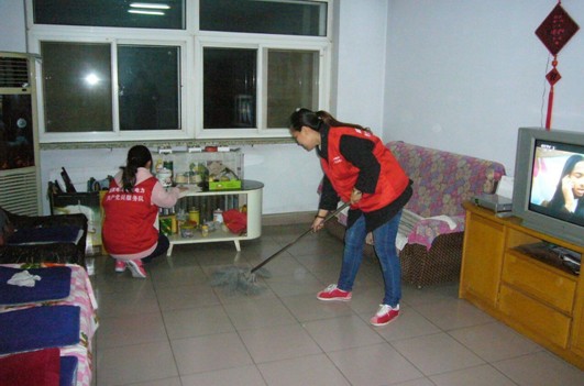 霍奶奶年事已高,而且又住在五楼,上下楼很不方便,志愿者为老人送上慰问品,一方面表示对老人的关心,另一方面也希望他们的到访为老人带去脉脉温情。大家有的帮助老人打扫卫生,有的细致的检查线路,排查故障。