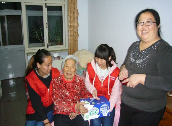 敲开老人家的门,老人家看到大家很是欣喜,热情地把大家让进屋里。霍奶奶又是倒水,又是洗水果,不知道如何表达自己的高兴劲。志愿者们握着老人的手坐在沙发上,从老人的身体情况聊到日常琐碎,就像老人的孩子一样融入了老人的家。
