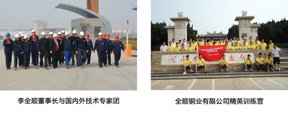 为此项目的顺利投产,自2013年6月以来,全顺铜业培养了大批储备力量,按照20:1比例的层层选拔,从哈尔滨工业大学、中南大学、北京科技大学、中国矿业大学、东北大学等知名学府中的85名优秀应届毕业生聚集全顺。6月21日,“简单快乐,精彩生活”,为期七天的精英开学训练营正式启动,经过最终筛选,58名精英大学生被安排进入享有中国有色金属界“黄埔军校”美誉的洛阳有色金属工业大学进行为期半年的专业技能培训。全顺铜业人才培养模式得到了洛阳有色金属大学杨校长的高度认可,他表示:我们会把全顺铜业人才培养模式作为行业典范进行学习和推广,供其他公司学习借鉴。他们即将走上全顺铜业国际顶尖铜板带、铜箔生产线,深入到全顺铜业尖端岗位,共同生产、研发高精压延铜箔。