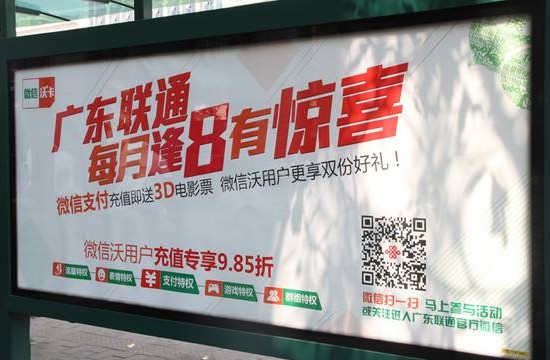 此外,扫描户外公交站点上广东联通“逢8特惠”的二维码,亦可以参加活动,非常方便。