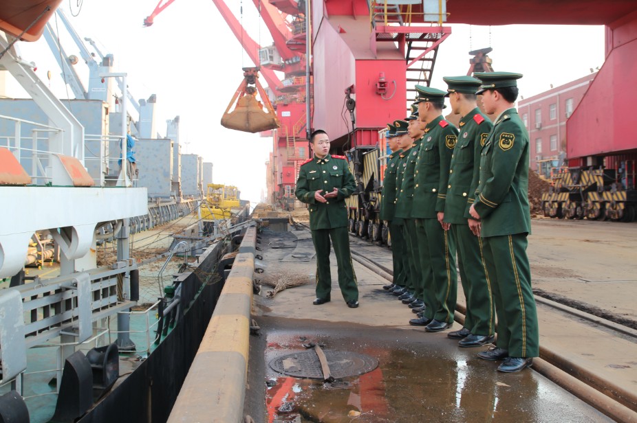江苏边防总队盐城边检站组织全体官兵参观码头执勤点