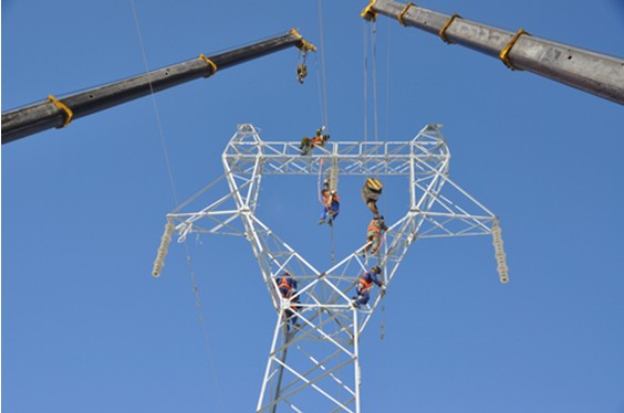 近日,蒙东呼伦贝尔供电公司对牙克石—扎兰屯220千伏输电线路加装绝缘子,保障冬季寒冷天气供电安全。王庆文 摄