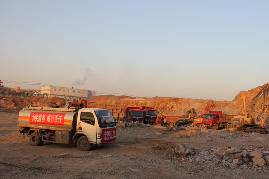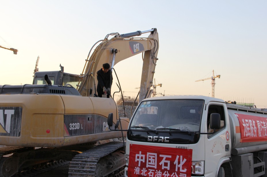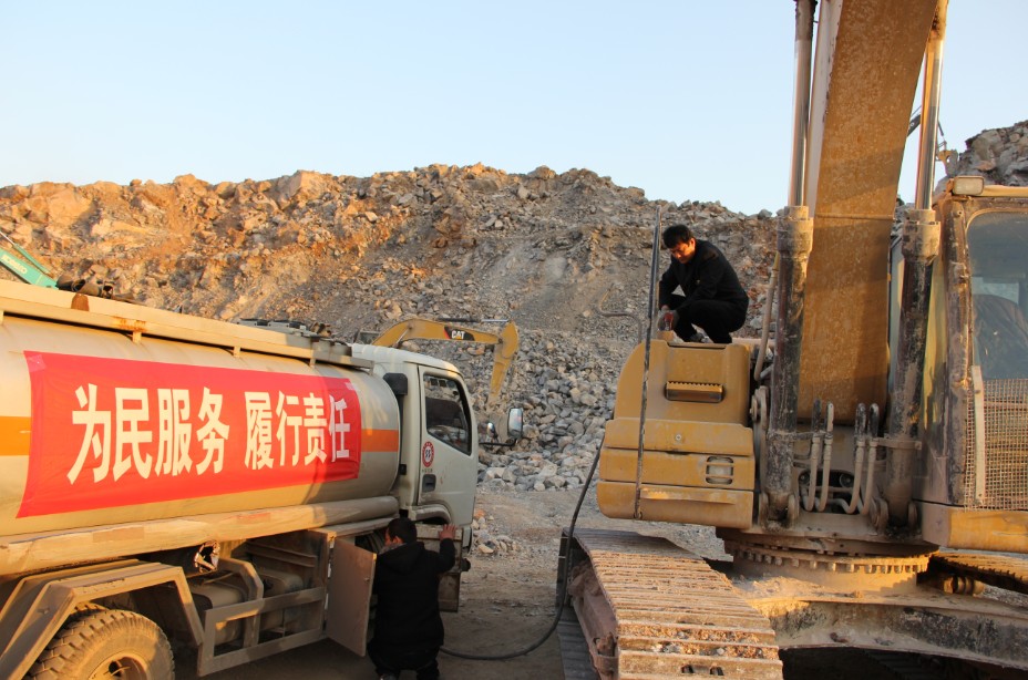 图为:11月27日,淮北石油客户经理为淮北市烈山国购汽车广场项目送油。