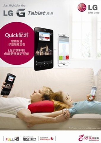 总体而言,G Tablet 8.3这款汇聚了全高清IPS屏幕,一流硬件配置以及人性化用户体验的平板电脑,尤其适合旅行外出、商务办公、家庭娱乐及对显示效果要求较高的人群。据相关消息称,G Tablet 8.3近期就会在中国市场正式发售,并延续此前LG G2成功的营销经验,继续与京东商城合作,以电商平台作为主要供应渠道,相信这款备受期待的平板电脑一经发售,必将引发一场新的抢购风潮!