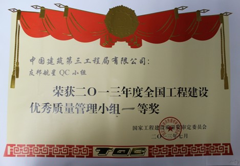 项目成立之初便成立了QC小组,本QC小组围绕企业的经营战略、方针目标和现场存在的问题,以提高施工质量、降低消耗,运用质量管理的理论和方法提高现场施工质量。本QC小组从2011年至2013年连续3年获得分公司级QC比赛一等奖,获得省级QC比赛一等奖和二等奖各一次,获得国家级QC比赛一等奖一次。
