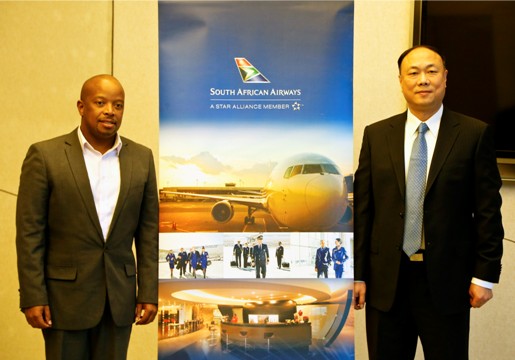 (图为:南非航空亚太区高斌里先生与中国区麦波先生)