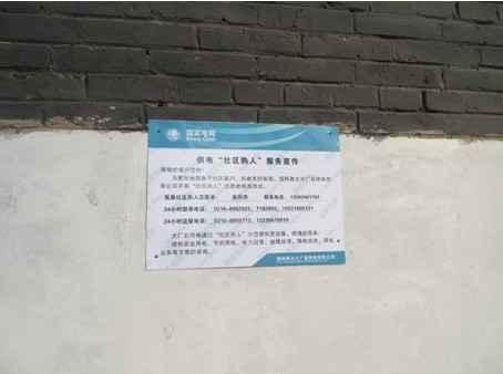 12月初,陈府供电所利用例行巡视的机会开展“服务宣传”挂牌安装工作,挂牌上标有志愿者姓名、联系电话、服务承诺等等。牌子全部悬挂在村民经常出入的场所,如小广场及小卖部、村委会门口,在安装的过程中,有不少过往的村民前来询问,“你们费这个劲干啥啊,联系卡不是都发了吗,上面电话都有啊!”志愿者说:“形式多样化,服务更便捷啊,我们把牌子挂在大家经常出入的地方,大家有什么难题,也就更加方便找到我们啊。”村民们纷纷表示赞同,称赞供电所的服务越来越贴心、越来越周到,让百姓与供电所的距离越来越近。
