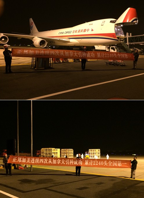 2013年12月24日凌晨2点15分,经过十几个小时的飞行,一架载满890头原种猪的波音747货机顺利降落福建福州长乐国际机场,这标志着正邦集团旗下加美(北京)育种科技有限公司第四次从加拿大引种成功。