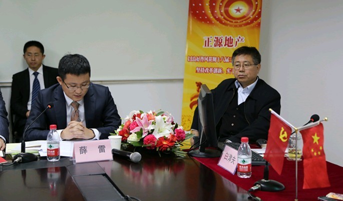 当中共中央政策研究室经济局副局长、“十八届三中全会”精神宣讲团成员白津夫论述到中国共产党人以更大的政治勇气和智慧,攻坚克难,引领改革航船驶向梦想彼岸时,正源地产董事、海汇地产总经理孙会忱介绍道,正源地产在创始人富彦斌的领导下,22年来,正源地产已经先后成功开发了大连幸福e家、大连吉祥e家;北京金融世家、北京尚峰尚水、北京定慧福里、正源广场;南京尚峰尚水;淮南金融世家;湖南尚峰尚水;重庆缙云山水、重庆福源等项目;正源地产在大连、北京、南京、淮南、重庆、长沙、西安、廊坊土地储备建筑面积为500万平方米。正源地产通过下设的中申建筑、正源装修、中源建材、正源物业、正源门窗、正源景观等全资子公司,构筑了集地产开发、建筑安装、装饰装修、建材生产、物业管理、门窗加工及景观设计、BT项目施工于一体的完整的产业链,成为一家跨区域多市场的专业地产公司。