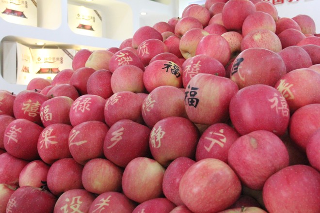 图三:在静宁苹果推介会上的“汉字”苹果。