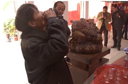 集团总经理赵锋先生亲自为老乡讲解天酝原浆的酿制过程