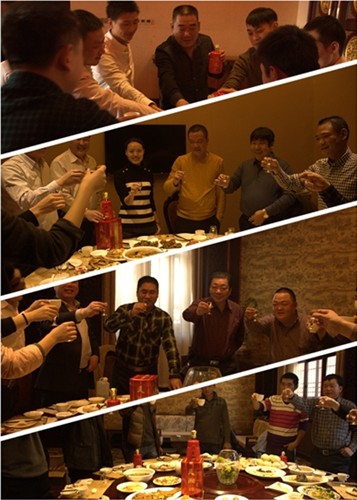12:50全体同仁在下榻饭店就餐和品鉴天酝原浆酒,其优良的品质和精美的包装在此得到了各到场嘉宾、经销商朋友的一致好评。