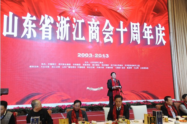 1月11日晚,由山东省浙江商会主办,现代联合集团、齐鲁银行、华纳集团、浙商保险、国大置业、悦庄集团、浙江省山东商会、洋河蓝色经典天之蓝协办的“山东省浙江商会成立10周年庆”在山东大厦盛大举办。山东、浙江相关单位领导以及全国部分商会负责人齐聚一堂,共庆山东省浙江商会的10周岁生日,回忆山东省浙江商会10年来在齐鲁大地走过的非凡历程。
