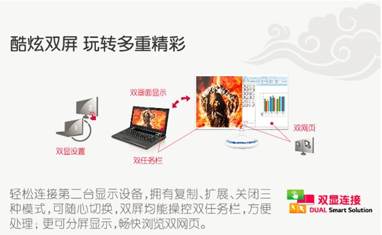 此外,LG MP56HC新品显示器支持笔记本进行显示器外接,并拥有复制、扩展、关闭三种模式,用户可在笔记本屏幕和外接的显示器屏幕上自由切换,且双屏均能操控“双任务栏”,使用更加方便灵活;更可分屏显示,畅快浏览两块屏幕上的显示内容。