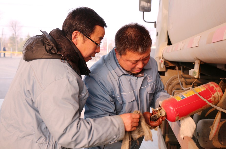 随着春耕期间用油激增,油罐车配送频次增加,安徽滁州石油分公司开展承运油罐车辆消防器材“专项检查”,在进出油库时“安检”、在到达加油站时“安检”、行驶途中抽检,以一车多检的方式强化安全意识,促进安全管理落到实处。图为滁州油库发油台员工检查油罐车随车灭火器压力表指数。(何文朝、常峰)
