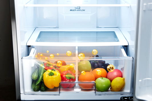 除此之外,LG NEPTUNE最吸引人的地方莫过于Vitamin保鲜盒。通过提取Vitamin颗粒然后经过特殊处理之后放置在冰箱内部并进行包装从而释放这些颗粒,让处于保鲜盒中的蔬果能够持久吸收到来自Vitamin发生器中的维他命C和其他养分,从而避免了蔬果易氧化或是无法保鲜的困境。这项功能也获得了日本食品研究室认证,让蔬果保鲜更为持久。