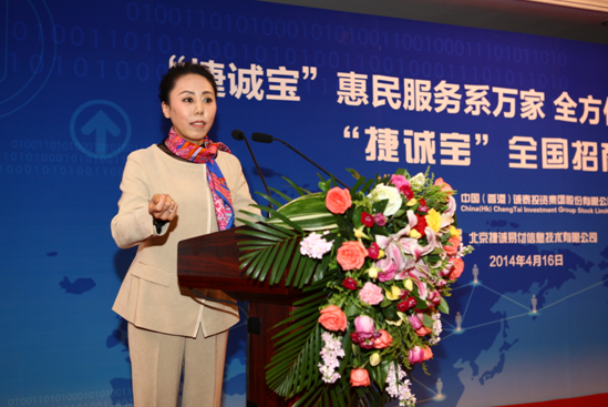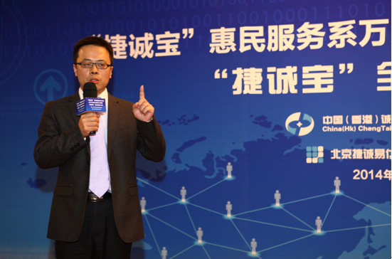 2014年4月16日,由中国(香港)诚泰投资集团有限公司主办、北京捷诚易付信息技术有限公司承办的“捷诚宝”招商大会在北京鹏润国际大酒店圆满落下帷幕。据项目负责人透露,此次招商会成绩斐然,江苏南京九维科技有限公司、长春易卡拉科技有限公司、浙江义乌德鸿电子科技有限公司、山西浩然科技电子有限公司及来自安徽、成都、哈尔滨、陕西、贵阳和广东等逾十家运营商,在大会现场直接签约。且在此之前,福建、陕西两省,保定、九泉、嘉峪关、哈尔滨等市级运营商已正式签约运营。而这一切,在诚泰投资集团董事长魏利军的眼中,只是一件水到渠成的事情。