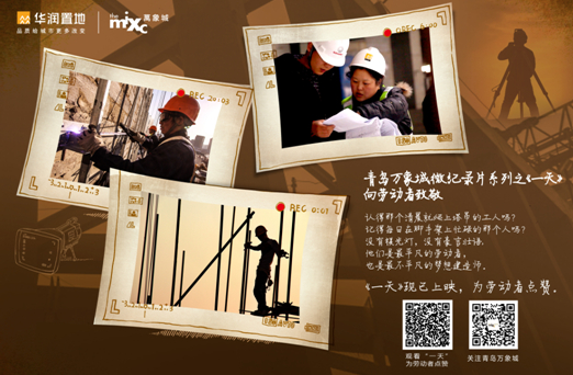 作为记录者,也作为青岛这座城市的建设者,青岛万象城希望可以通过《一天》的眼睛让社会更多地关注我们身边的每一位城市建设者。同时,作为一个坚持社会责任的企业,青岛万象城亦发起致敬劳动者活动。首次活动定于5月中旬启动,将邀请奋战在青岛万象城的建设者与他们的家人一起免费游世园,并开行专车接送,举行别具特色的发车仪式,让建设者们可以亲眼见证他们亲手建造的城市的成长。