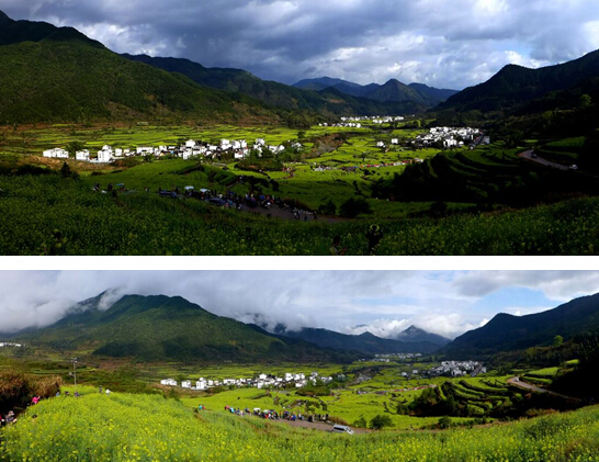 在婺源,站在高处往下拍,看了照片只能感叹大自然的鬼斧之作,层层的山脉盖房、耕田更展现了劳动人民的智慧。