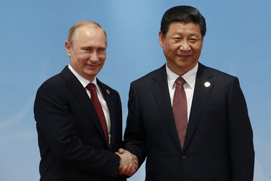 2014年5月21日,中国国家主席习近平与俄罗斯总统普京在上海会晤时握手。
