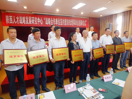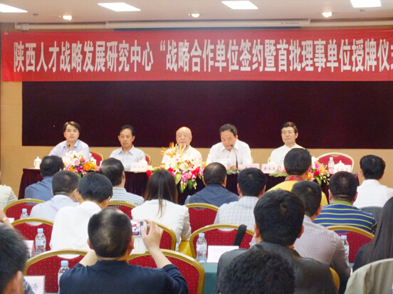 2014年5月20日陕西人才战略发展研究中心在止园饭店举行了“战略合作单位签约暨首批理事单位授牌仪式”。原陕西省委常委、常务副省长徐山林,中心顾问团总顾问刘文西,特邀嘉宾、战略合作单位代表,理事单位代表,理事会成员和新闻界的朋友们云集盛会,100余人参加了活动。活动由陕西人才战略发展研究中心副理事长兼秘书长李成平主持。