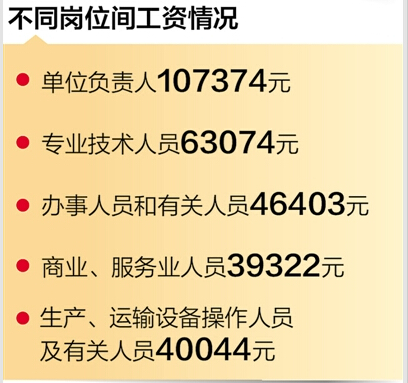 不同岗位间工资差距情况首次发布 单位负责人工资年均10万