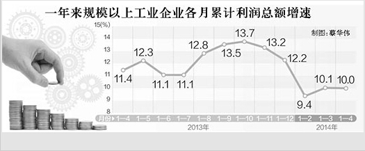 1—4月,全国规模以上工业企业利润增速小幅回落,原因主要有三方面:首先,工业制造业领域仍然存在严重的产能过剩。因为产能过剩严重,过度竞争、恶性竞争就难以避免,导致制造业企业的盈利能力和盈利水平下降;第二方面在于成本上升的压力,比如劳动力成本在过去10年中一直处于上涨区间,目前仍存在的融资难、融资贵等问题也使企业的资金成本大幅上涨。另外,生产者物价指数已经连续25个月负增长,一方面成本在上涨,另一方面生产者物价指数却在下降,这在相当程度上损害了企业的盈利水平。