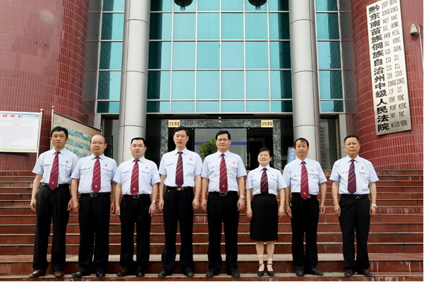 在黔东南苗族侗族自治州的土地上,活跃着一支务实苦干、争创一流的法官群体。自2011年11月新一届班子成立来,在党组书记、院长王四新的带领下,全州法院全体干警艰苦奋斗,团结拼搏,锐意进取,用自己的辛勤汗水在苗乡侗寨里描绘出了一幅人民满意的美丽画卷。雷公山巍巍,见证着苗乡侗寨大地上无数执法为民的故事;清江水潺潺,回荡着这片热土上公正司法的铮铮誓言。