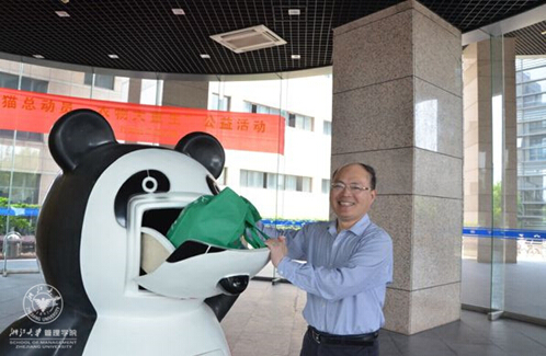 近日,一只只憨态可掬的“大熊猫”出现在浙江大学学子们的身边,学子们早早的准备好“食物”,争先恐后的将自己不穿的旧衣物“喂到”大熊猫的嘴巴里,而大熊猫则是毫不客气的将其咕嘟咕嘟地全部吞入了它硕大的肚皮子里。5月26日至5月30日,浙江大学管理学院联手中国首家五A级民间环保组织——绿色浙江,在浙江大学紫金港校区开展了“熊猫总动员,衣物大重生”公益活动。浙江大学的老师和同学们纷纷踊跃参与,为废旧衣物的循环利用出一份力。