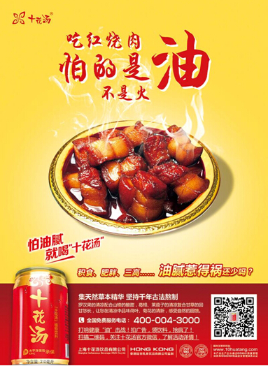 同时,“十花汤”又抛出了“吃XX,怕的是油不是火”这一重磅话题,将人们吃大鱼大肉时造成的上火现象,归结到“太油腻”的点位上,从而引出“怕油腻,就喝十花汤”的解决方案。这种提法,无论从医学道理,还是人的自身感受,都相当符合逻辑,自然受到了相当多的市场簇拥。而在“怕油非火”的理论背后,更是“十花汤”剑指“去火”饮品的非凡野心。或许,面对一个新手的豪言挑战,加多宝并不会为之所动。但我们也不能预测,是否会有更多的产品在“十花汤”的带动下“起义”。