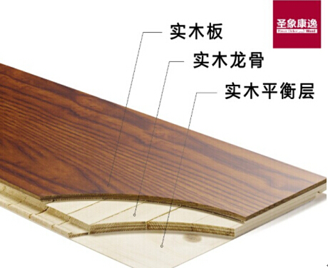 圣象实木,三层结构:圣象三层实木地板发明了独特的纵横结构,创新三层实木结构,层与层之间采用不同木种纵横交错重叠压制,从而使木材之间相互牵扯,有效克服木材自身的张力,确保实木地板恒久稳定;
