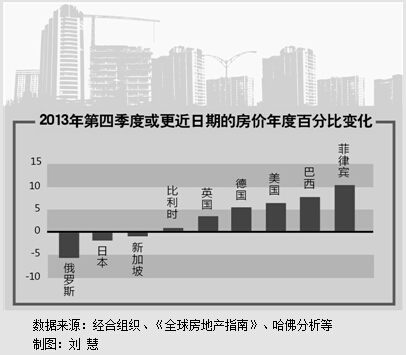 国际货币基金组织发布的全球住房价格指数显示,在经历了金融危机后一段时期的低迷,全球房价迄今已经连续七个季度上涨。过去一年时间,被统计的52个国家和地区中,有33个国家的房价上涨。