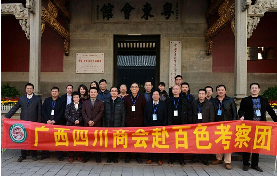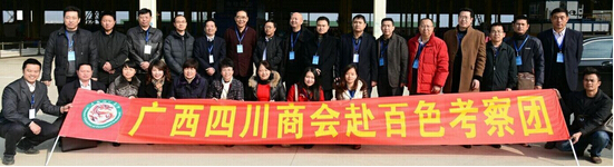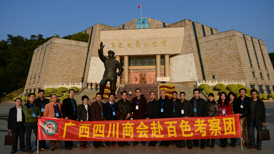 百色是中国共产党重要的革命老区,百色人民为新中国的成立作出了杰出贡献。百色市铝工业基础雄厚、物产丰富、人杰地灵是企业家投资的首选地区。此次投资考察,以广西中矿建设投资开发有限责任公司董事长、广西四川商会名誉会长徐争游为团长,广西中矿建设投资开发有限责任公司顾问、原自治区政协副主任、统战部长王庆录、四川省人民政府驻南宁联络处主任、广西四川商会顾问陈勇为顾问,广西四川商会会长、广西和润实业发展集团董事长李润为副团长,百色川渝商会会长、广西隆盛农林开发有限公司董事长邓殊昪,东兴四川商会会长、东兴创元红木家具有限公司董事长彭和平,广西四川商会执行会长、广西国窖酒业有限公司董事长刘鉴颐,广西四川商会执行会长、广西川汇大业投资有限公司董事长温成云,广西四川商会执行会长、广西宏纲房地产开发有限公司董事长罗成纲,广西四川商会秘书长朱学麒,广西四川商会常务理事、广西尓豪服饰有限公司董事长刘力嘉,广西四川商会常务理事、广西宝春投资有限公司董事长伏子光,广西四川商会常务副会长、广西厦控科贸有限公司董事长陈国武,广西四川商会常务副会长、广西八桂投资集团副总裁罗小刚,广西北海四川商会常务副会长、广西四川商会会员、湖南高城消防工程有限公司广西公司总经理伏礼德,广西北海四川商会副会长、广西四川商会会员、广西世纪达装饰工程有限公司副总经理唐立海,深圳联建建设集团副总裁马进松,广西南珠宫投资控股集团有限公司常务副总经理吴清池等为成员;百色市委常委、纪委书记张俊雄,百色市人民政府副市长罗林,百色市人民政府副秘书长苏秀东、黄永才,百色新山铝产业示范园规委会主任黄秋幸、百色新区管委会常务副主任黄文明,百色国家农业科技园区管委会副主任贺贵柏,百色市农业局党组书记黄政,百色市商务局党组书记、副局长余显琳,百色市发改委副主任 刘北,百色市住建委副主任黄瑞坡,百色市国土局副局长罗有忠,百色市工信委副主任龙晗,百色市环保局总工程师罗志鸿,百色市投资促进局副局长余荣雁,百色市旅游局纪检组长李春玲,右江区政府副区长文燕等百色市委、市政府有关部门领导对百色市情和考察项目进行了介绍,双方并就项目对接进行了研讨,随后实地考察了百色新山铝产业示范园、百色国家农业科技园、百东新区,期间还参观了红七军军部旧址、百色起义纪念碑、百色起义纪念馆。