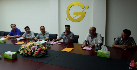 考察团在广西中矿公司会场(左起陈勇、王庆录、刘志明、李润)